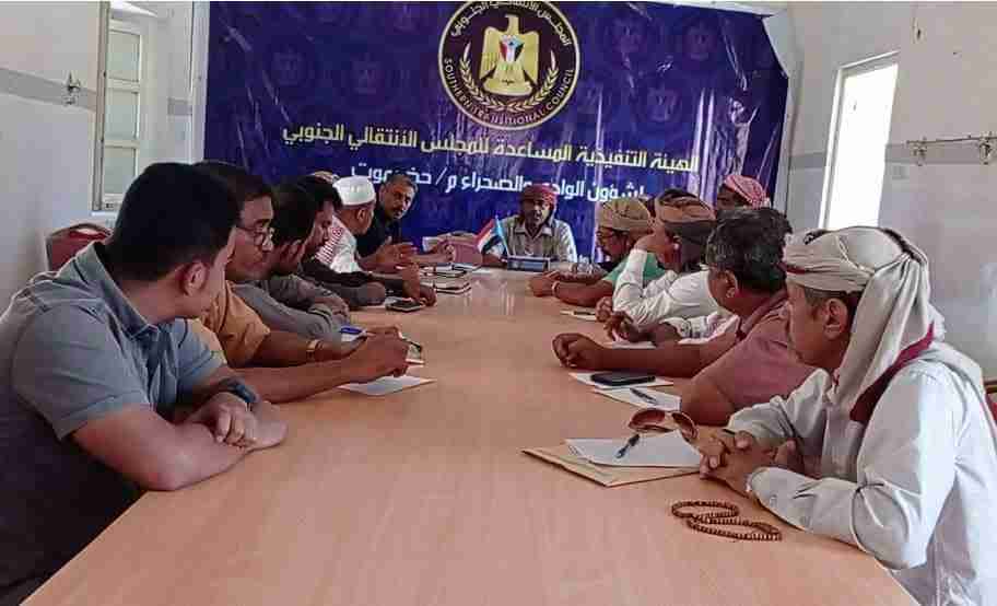عقدت الهيئة التنفيذية المساعدة للمجلس الانتقالي الجنوبي لشؤون مديريات وادي وصحراء حضرموت اجتماع طارئ ، صباح يوم الاربعاء الموافق 18مايو2022م بحضور رؤساء الهيئات التنفيذية بالمديريات.