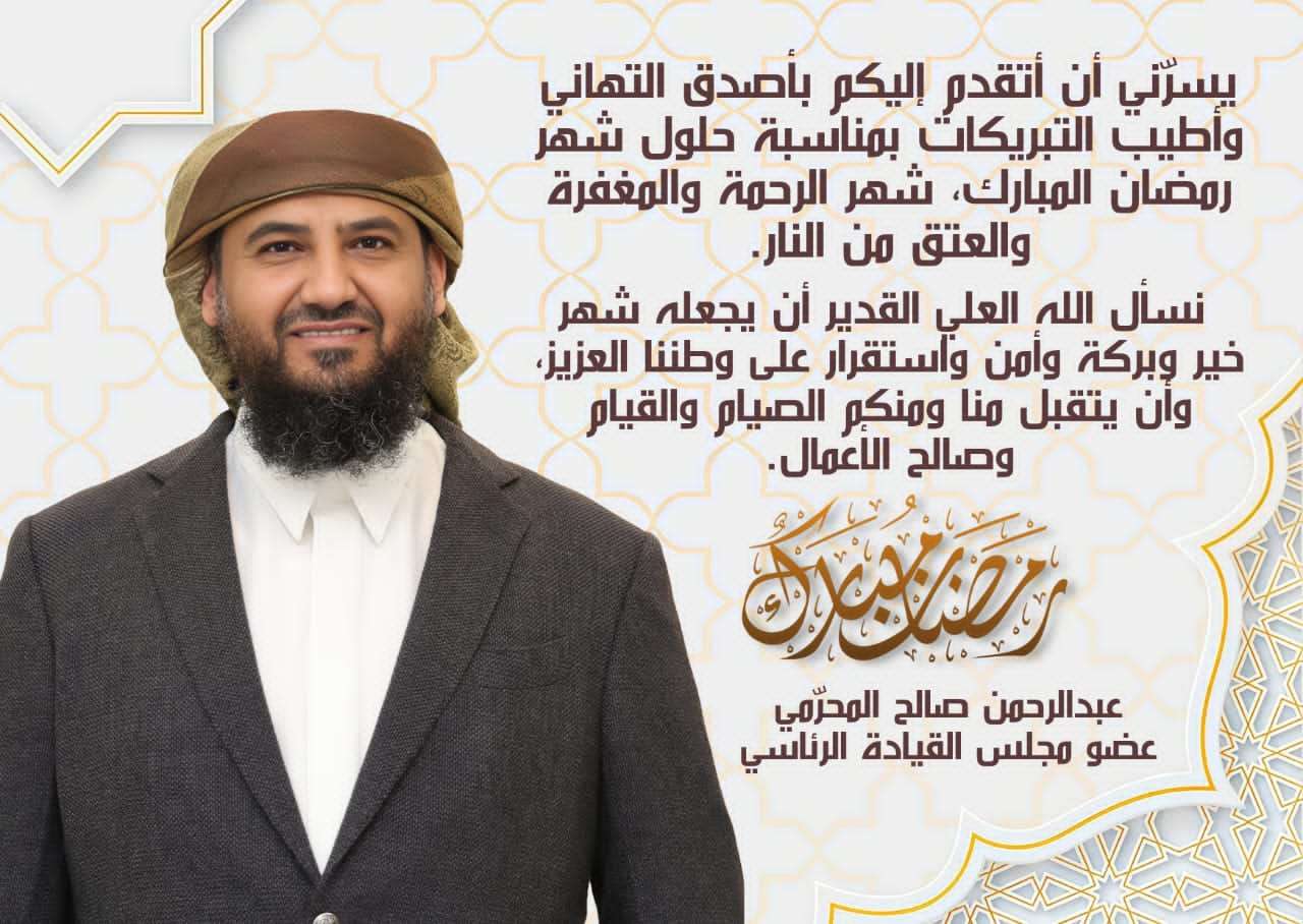 عضو مجلس القيادة "المحرّمي" يهنئ الشعب بقدوم شهر رمضان المبارك