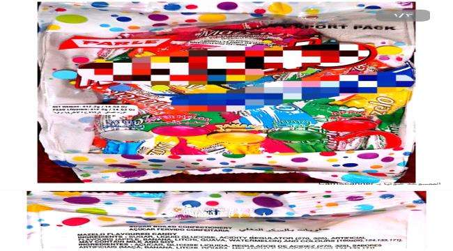 وعبر مكتبها في منفذ شحن البري قامت الهيئة برفض 175 كرتون حلوى بالسكر لاحتوائها على الملون الصناعي ثاني اكسيد التيتانيوم، E171 الذي يحظر استخدامه في الأطعمة.