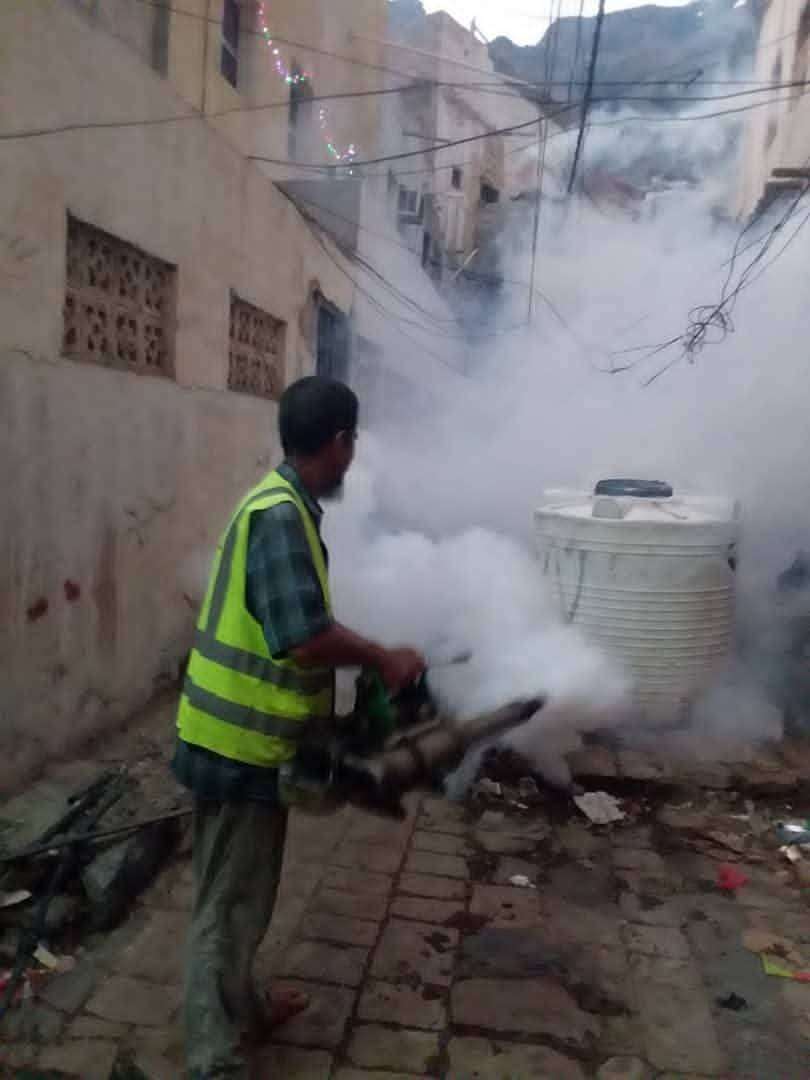 تواصل حملات الرش الضبابي لمكافحة البعوض في مديرية صيرة بعدن