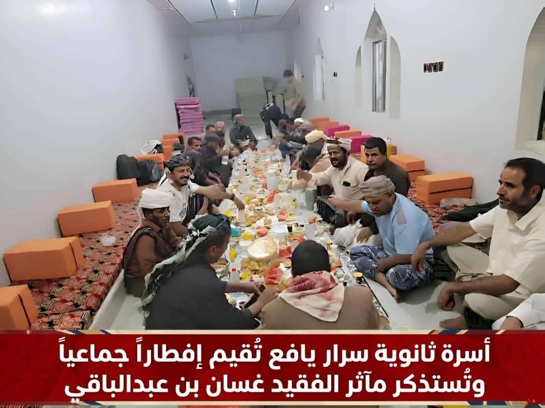 أسرة ثانوية سرار يافع تُقيم إفطاراً جماعياً وتُستذكر مآثر الفقيد غسان بن عبدالباقي