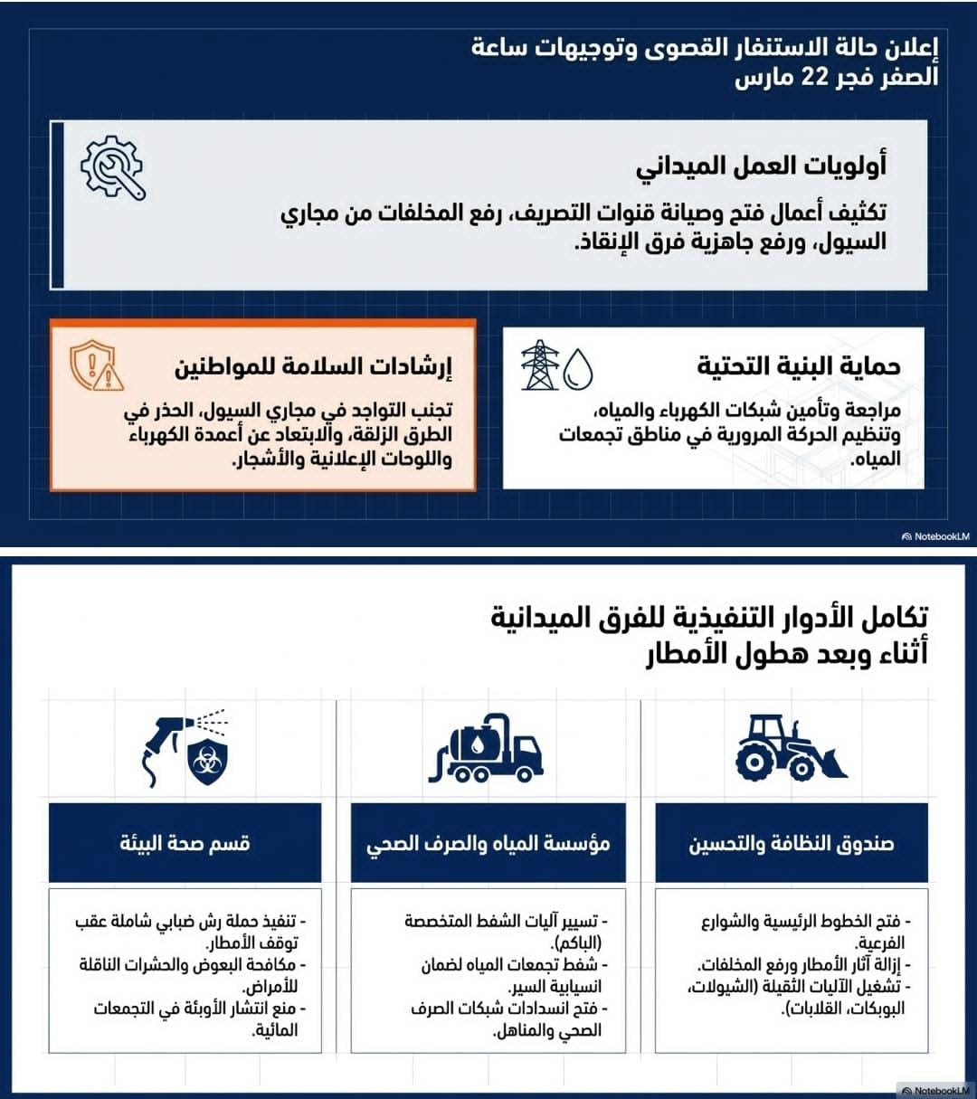وشدد المحافظ على ضرورة تعزيز التنسيق بين الجهات المختلفة والعمل بروح الفريق الواحد، وتشكيل فرق ميدانية مجهزة بالمعدات اللازمة لتوزيعها على المديريات، مع التركيز على مواجهة ضعف البنية التحتية وشبكات تصريف المياه المتهالكة.