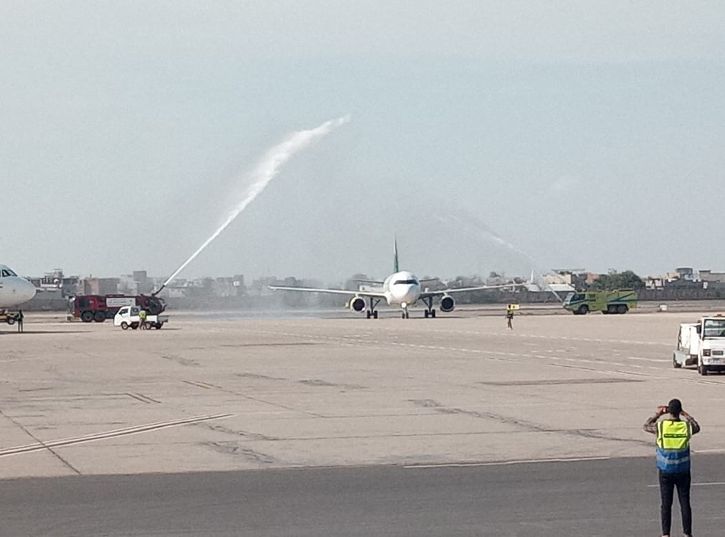 وصلت، اليوم، إلى مطار عدن الدولي طائرة "المنصورة"، كأول طائرة مملوكة لشركة طيران عدن، حيث جرى استقبالها باستقبال رسمي، عقب استكمال تجهيزها الفني والتشغيلي.