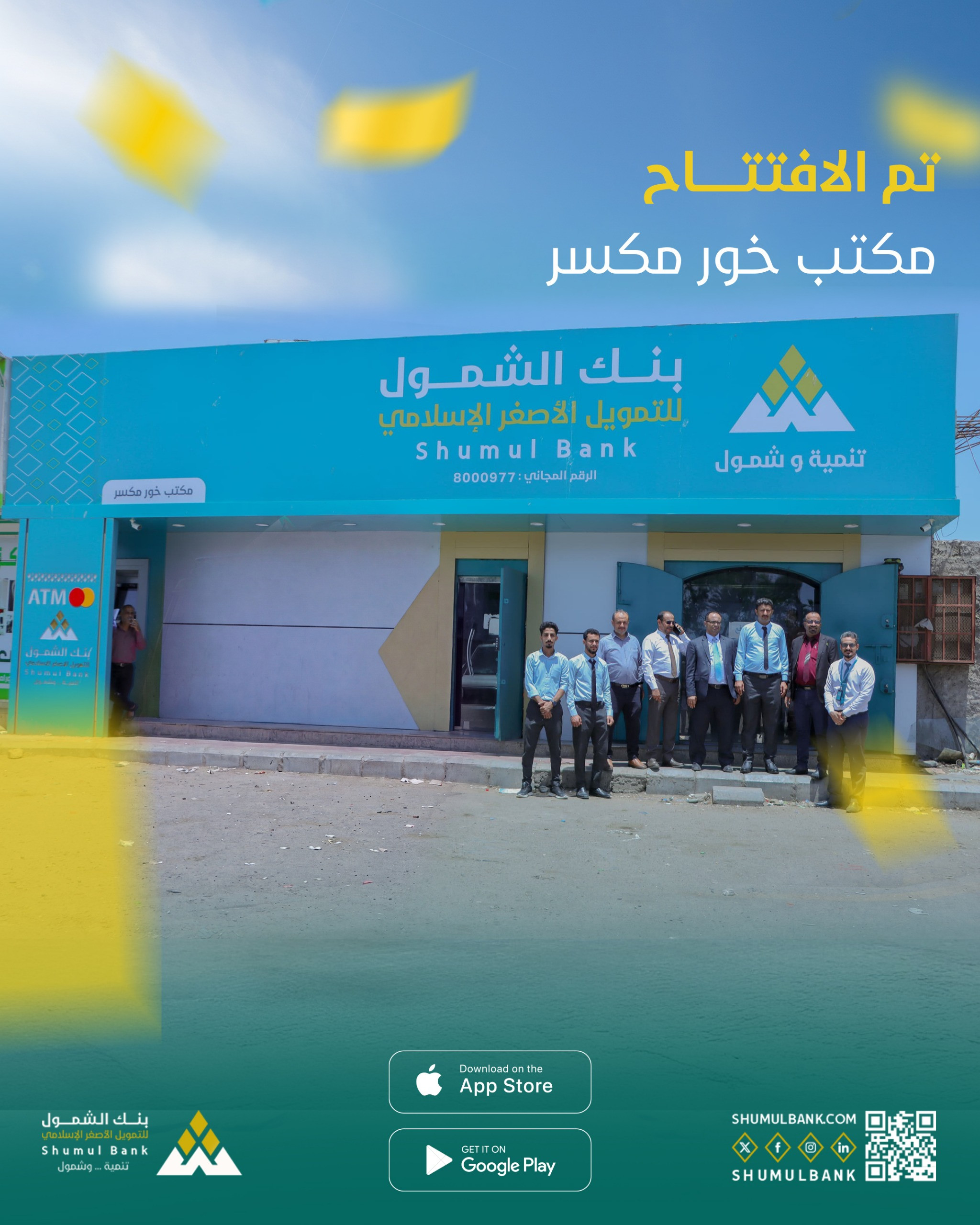 بنك الشمول يفتتح مكاتب خور مكسر ومطار عدن الدولي