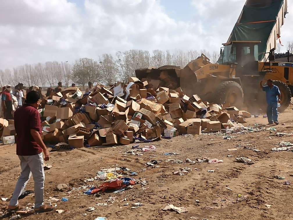 أتلف قسم صحة البيئة بمكتب الأشغال العامة والطرق في مديرية المنصورة العاصمة عدن، اليوم، ( 8 ) أطنان من المواد الغذائية منتهية الصلاحية وغير الصالحة للاستهلاك الآدمي.