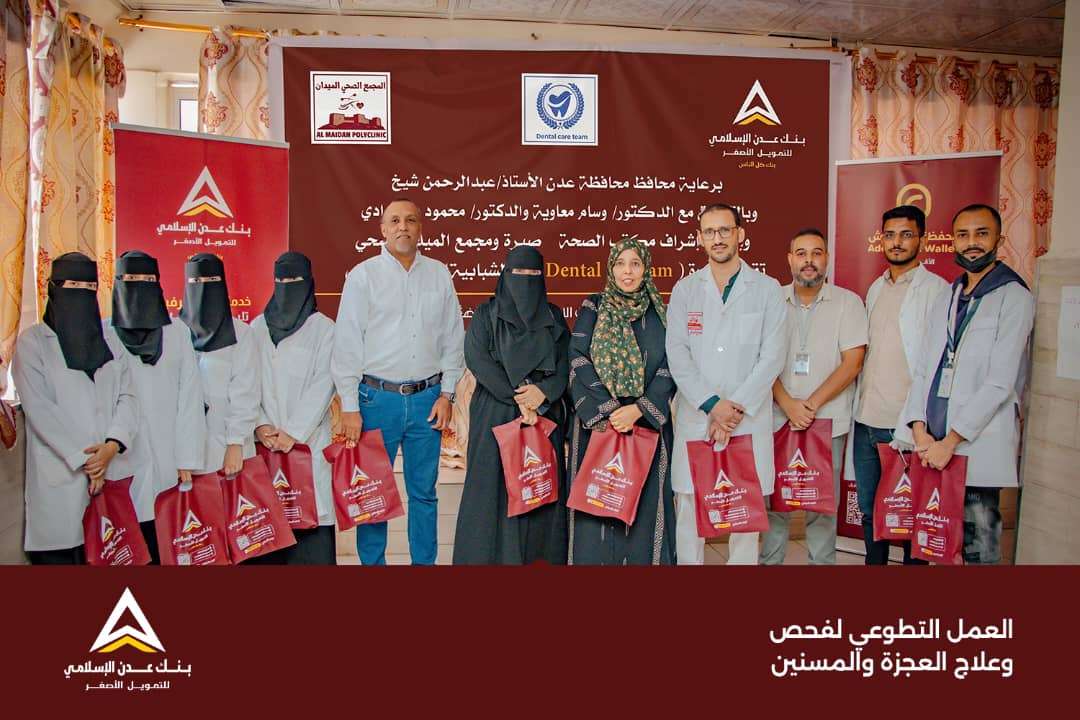 ضمن التزامات البنك بدعم المبادرات المجتمعية وتعزيز دوره الإنساني، قدّم بنك عدن الإسلامي للتمويل الأصغر رعايته لمبادرة صحية نفذها فريق Dental Care Team، بالتنسيق مع مكتب الصحة في مديرية صيرة ومجمع الميدان الصحي.