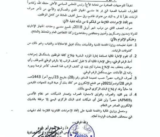 صنعاء قرارات مالية صادمة.. آلاف الموظفين إلى التقاعد القسري وربع راتب كل ثلاثة أشهر