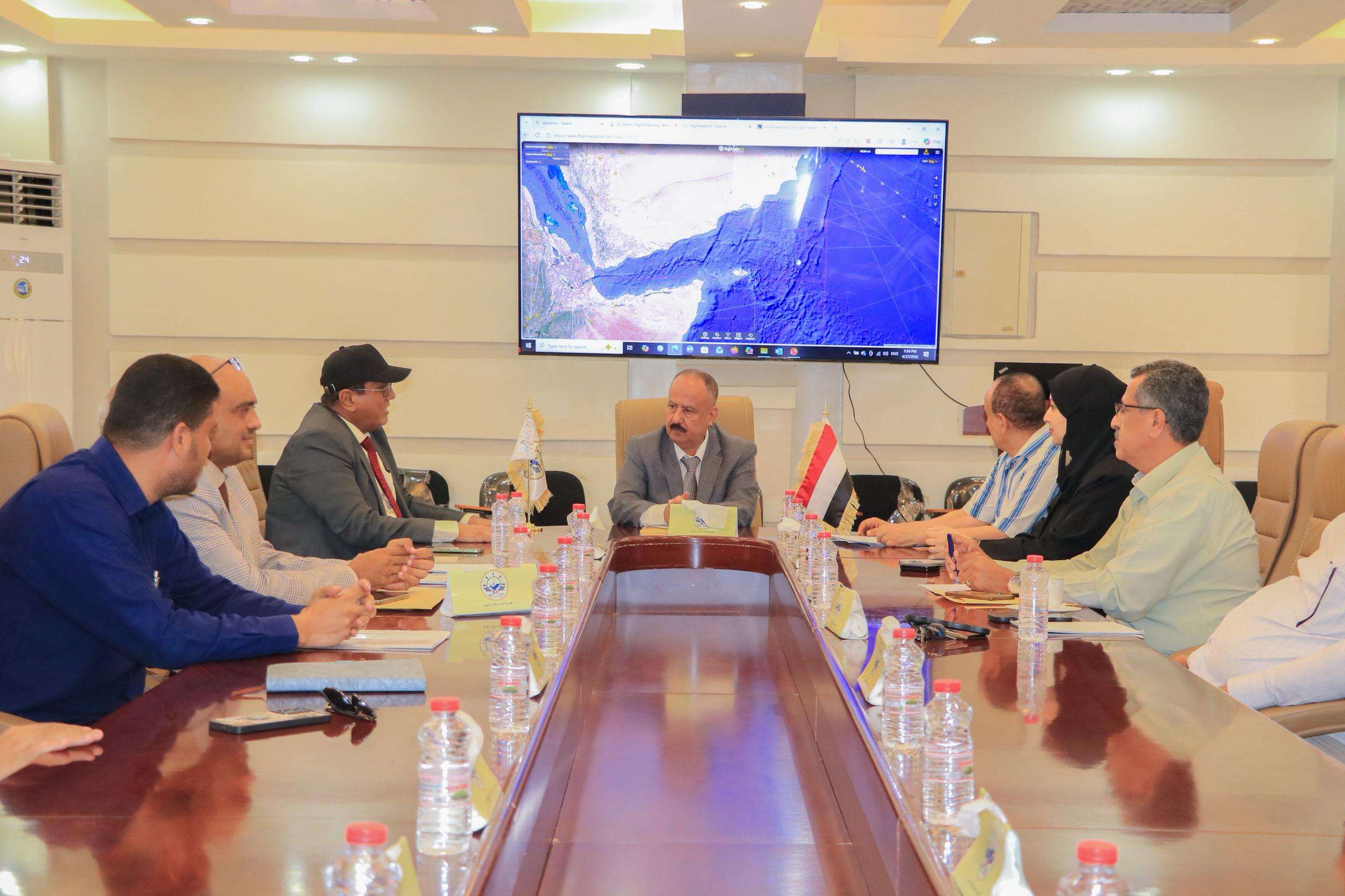حضر الاجتماع، وكيل وزارة النقل لقطاع الشؤون البحرية والموانئ القبطان علي الصبحي والفريق المكلف من الهيئة العامة للطيران المدني والأرصاد وسكرتير خاص وزير النقل حنان شوقي.