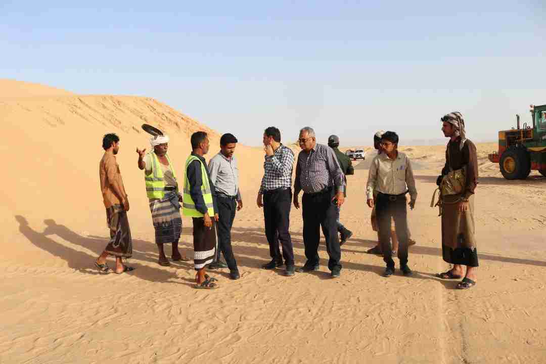 وقام الفرق الفني الخاص بالصندوق برفقة المهندس حسين الخليفي مدير فرع مكتب الاشغال العامة والطرق بشبوة والمهندس عوض ديمان مدير فرع المؤسسة العامة للطرق والجسور والمهندس سند باقادر الاطلاع على معاناة المسافرين والمواطنين بسبب زحف الرمال للخط الدولي.