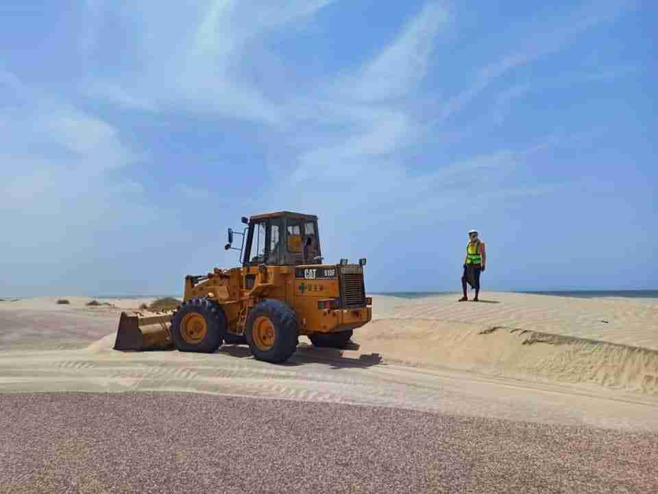دشن صندوق صيانة الطرق والجسور بمحافظة شبوة صباح اليوم أعمال إزالة الكثبان الرملية بخط الساحل الدولي بمديرية رضوم بتوجيهات من محافظ شبوة عوض بن الوزير العولقي.