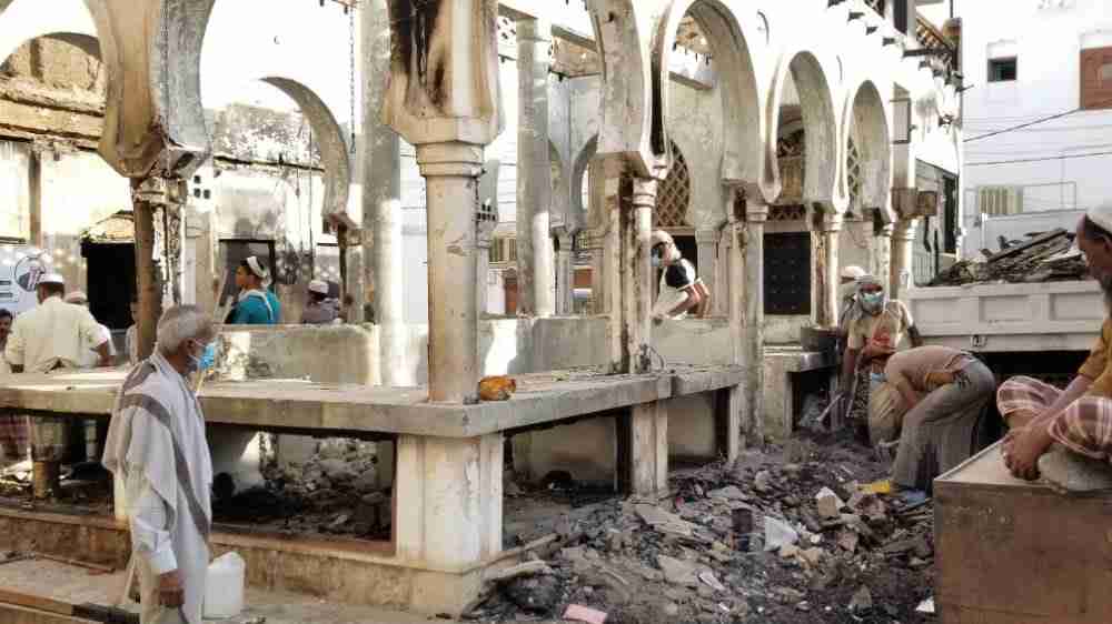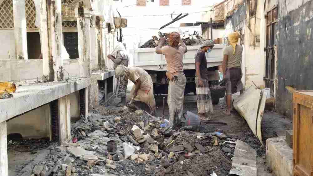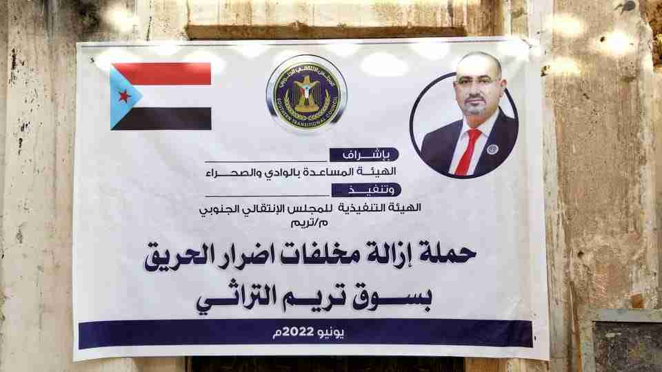 انتقالي تريم يدشن حملة رفع مخلفات الحريق من سوق تريم الأثري بالمديرية