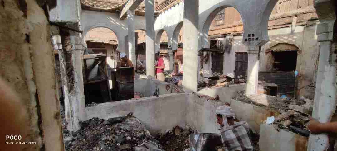 نزلت اللجنة المكلفة من قيادة المجلس الانتقالي الجنوبي بمديرية تريم محافظة حضرموت، اليوم، لحصر أضرار الحريق الذي نشب في سوق تريم الأثري، السبت الماضي.