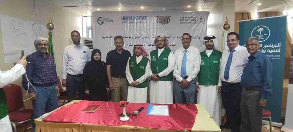 جرى اليوم بالعاصمة عدن توقيع الاتفاقية الخاصة بتنفيذ المجموعة الأولى لمشروع المسكن الملائم وإعادة تأهيل 600 منزل للعائلات ذوي الدخل المحدود عن طريق برنامج الأمم المتحدة للمستوطنات البشرية " هابيتات" وبالتنسيق مع وزارة الأشغال العامة و بالشراكة مع البرنامج السعودي لتنمية وإعمار اليمن ومؤسسة الوليد للإنسانية.
