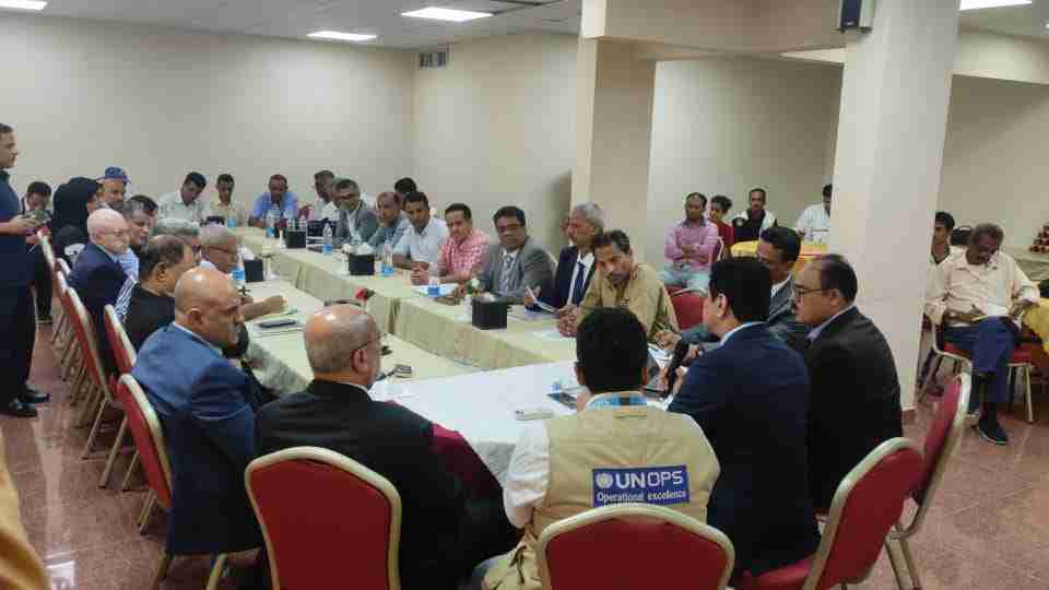 عقد مكتب الأمم المتحدة لخدمات المشاريع UNOPS في اليمن، اليوم الخميس، لقاءً موسعًا مع وزير الإدارة المحلية، حسين الأغبري، ومحافظي وقيادات السلطة المحلية في عدن، لحج، تعز، أبين، والضالع؛ بهدف مناقشة ومتابعة سير تنفيذ برنامج تطوير المدن الحضرية.