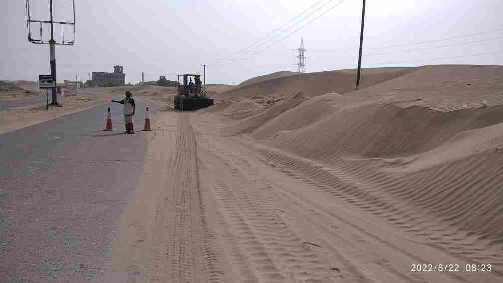 ولفت حسن تأتي أعمال إزاحة الرمال في جميع الطرق الرئيسية والشريانية الرابطة بين المحافظات بمتابعة مباشرة من قبل رئيس مجلس إدارة صندوق صيانة الطرق الذي يولي هذه الأعمال اهتمام خاص لما يسببه زحف الرمال من خطر على سلامة مستخدمي الطريق.