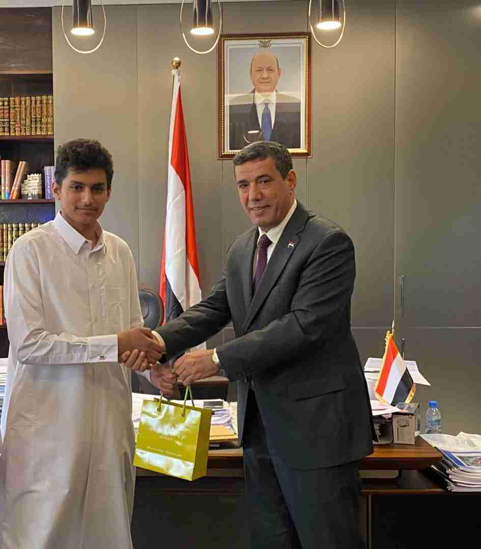 رم السفير اليمني لدىّ دولة قطر، راجح بادي، الطالب اليمني محمد عبدالقادر، اليوم الاثنين، لتفوقه في الثانوية العامة وحصوله على المركز الرابع على مستوى دولة قطر.