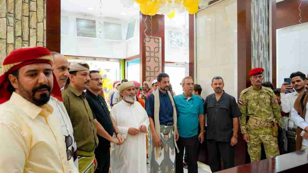 رجل الأعمال الشيخ عبدالرحمن الجهوري يفتتح شركة كنوز للرخام والسيراميك في عدن