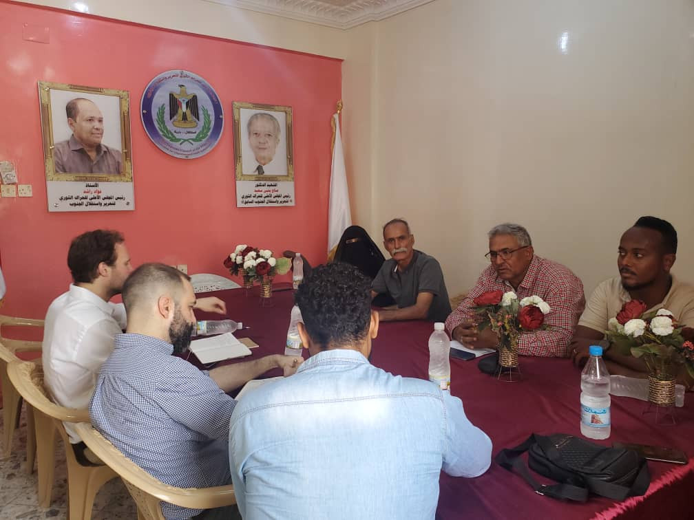 ألتقى العميد حسن اليزيدي أمين سر المجلس الأعلى للحراك الثوري والدكتور محمد عبدالهادي رئيس الدائرة السياسية بالمجلس والاستاذة رضا طه رئيسة دائرة المرأة والاخ خالد فيصل رئيس دائرة الشباب بمجلس الحراك الثوري بالعاصمة عدن صباح اليوم بمقر المجلس بمدينة كريتر بوفد المعهد الاوروبي للسلام ممثلا في السيد جيمي بليديل بوفيري مسئول الشرق الأوسط وتحديدا اليمن وشمال افريقيا والسيد ثانوس بيتوريس باحث ومسئول ملف اليمن بالمعهد الاوروبي .