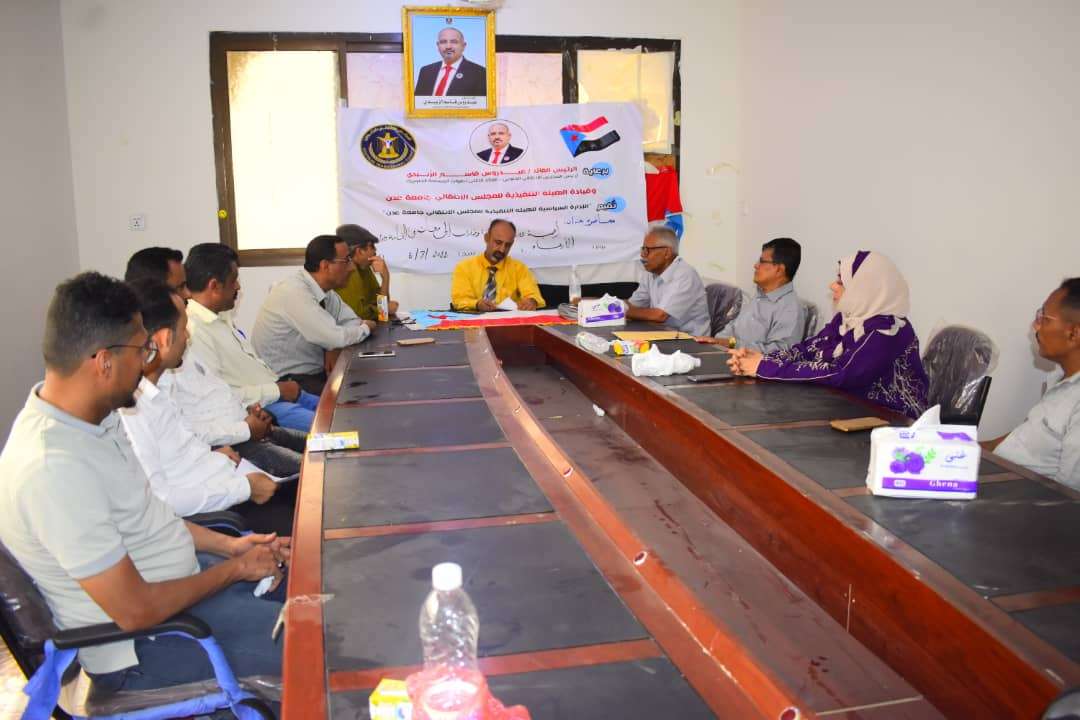 حضر فيها د. عبدالعزيز باحيدرة، نائب رئيس المنسقية العليا للمجلس الانتقالي الجنوبي في جامعة عدن، وعددا من رؤساء واعضاء دوائر المنسقية.