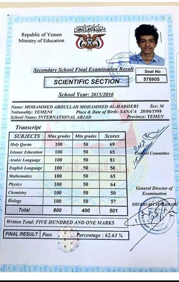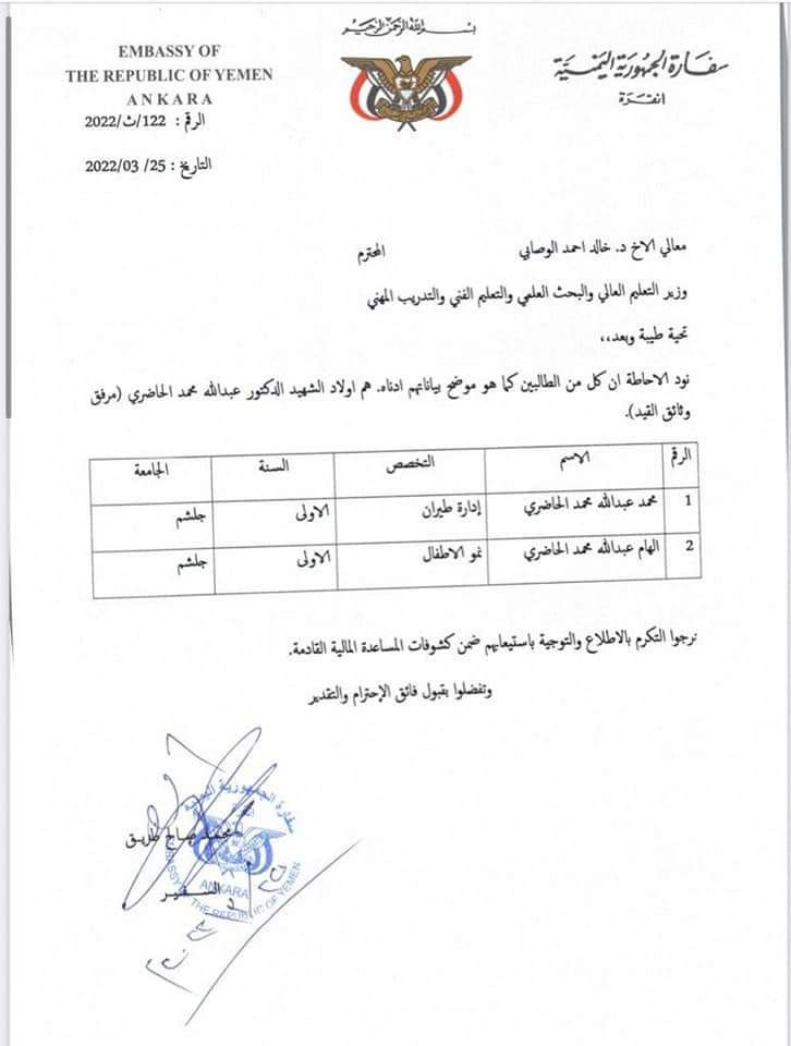 "مرفق استمارة الثانوية العامة، وإرسالية من سفارة بلادنا في تركيا"