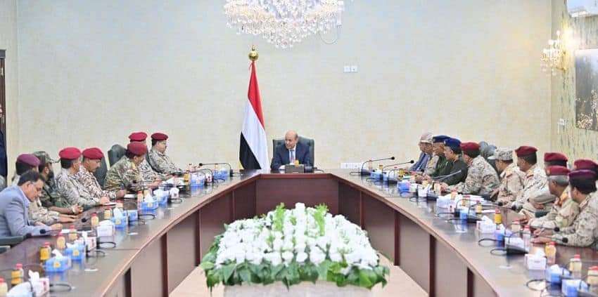 ووضع رئيس مجلس القيادة الرئاسي القادة العسكريين والامنيين، امام تطورات الاوضاع، واصلاحات المجلس الجارية لتعزيز الدور القائد للقوات المسلحة والامن في معركة استعادة الدولة، ومكافحة الارهاب، وتحقيق تطلعات الشعب اليمني بانهاء الانقلاب وتحقيق الامن والاستقرار.
