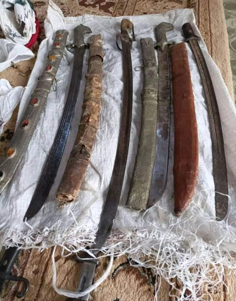 وأفاد مصدر أمني بأن المضبوطات التي تم التحريز عليها تنوعت بين اسلحة (مسدسات) وسكاكين وسيوف ورصاص وكذا قطع أثرية قديمة.