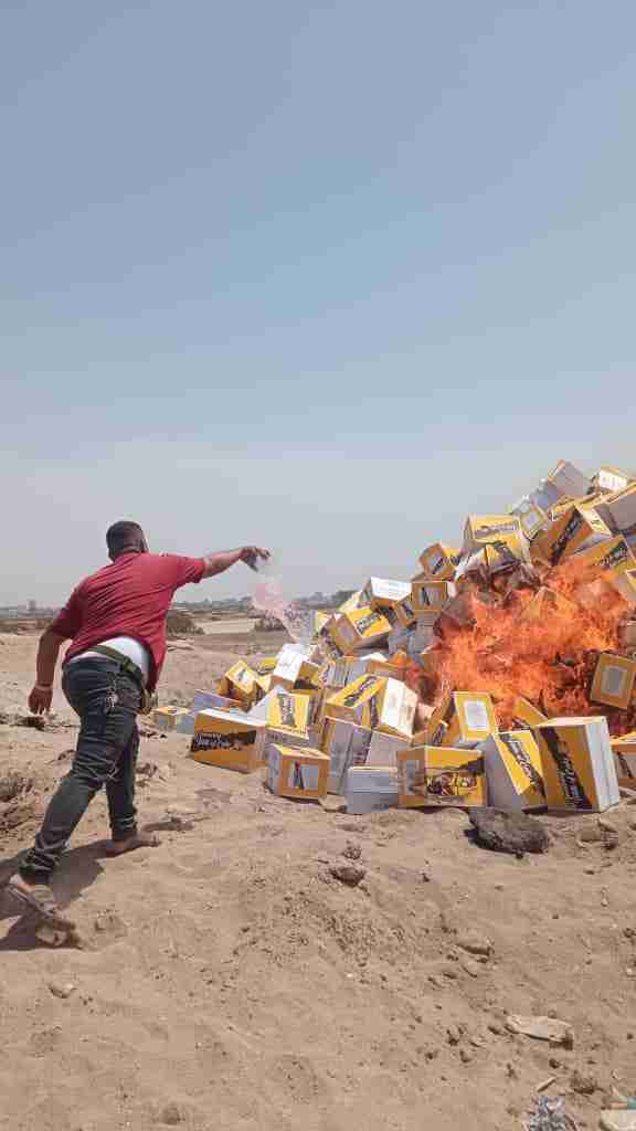 قام جمارك المنطقة الحرة عدن يومنا هذا الاربعاء 3/اغسطس/2022م بإتلاف حاوية 40قدم تحتوي على 1940 كرتون من كيك (LEMINPU) كانت قد انتهت صلاحيتها وتم رفضها من قبل هيئة المواصفات والجودة بسبب وجود رائحة غير مرغوب فيها.