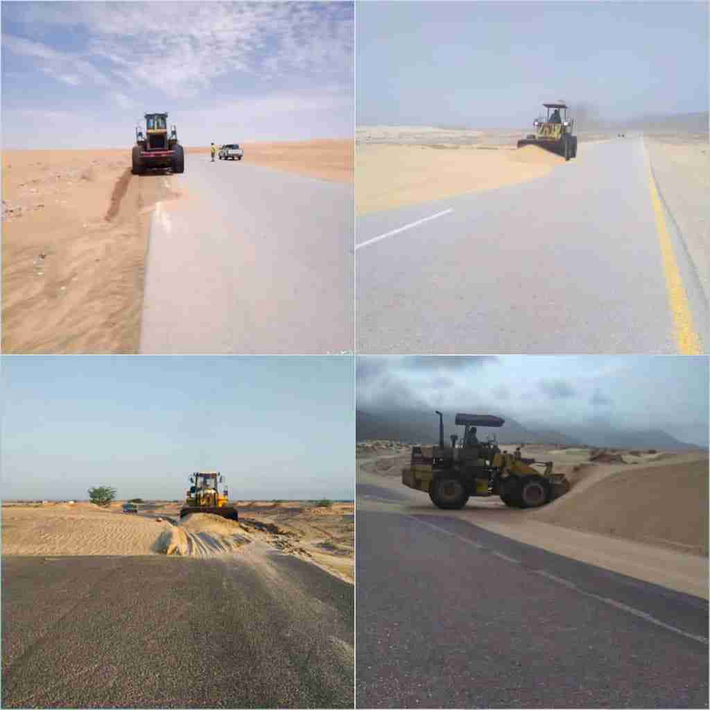 وتقوم المؤسسة العامة للطرق والجسور فرع شبوة كجهة منفذة أعمال ازاحة من عدة طرقات رئيسية وشريانية بالمحافظة تفادياً للحوادث المرورية التي تسببها زحف الرمال للخطوط.
