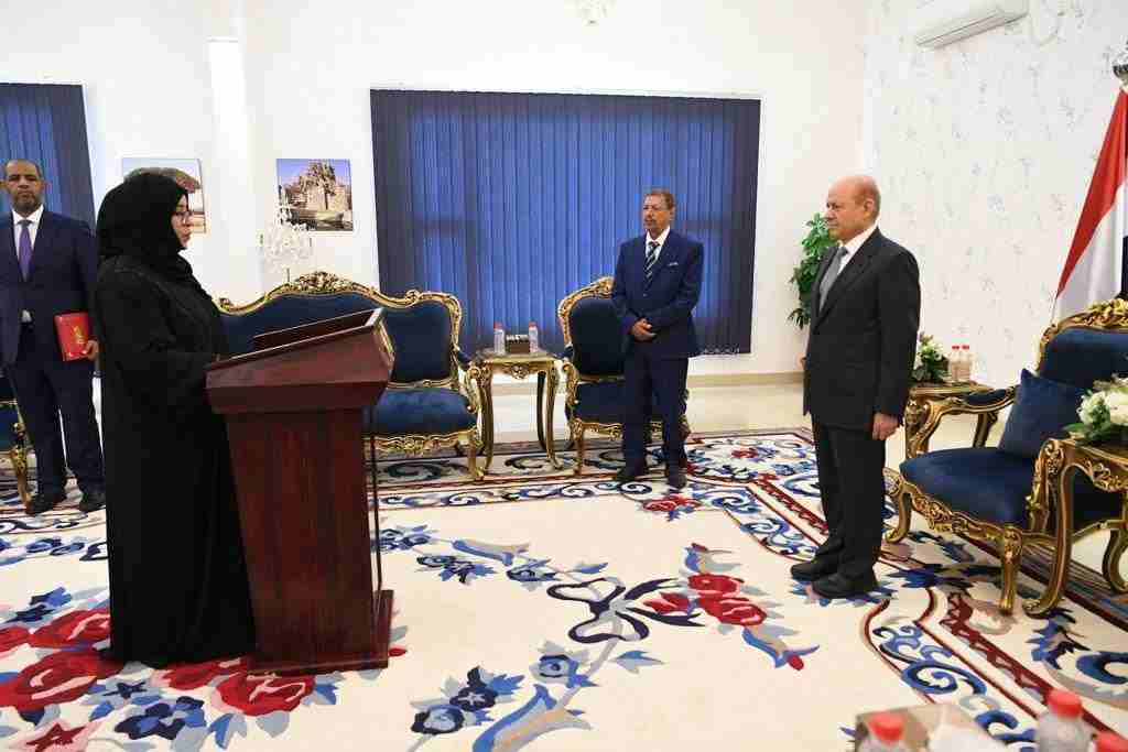 كما ادى اليمين القانونية امام رئيس مجلس القيادة الرئاسي، القاضي فوزي علي سيف المحامي العام الاول في الجمهورية.