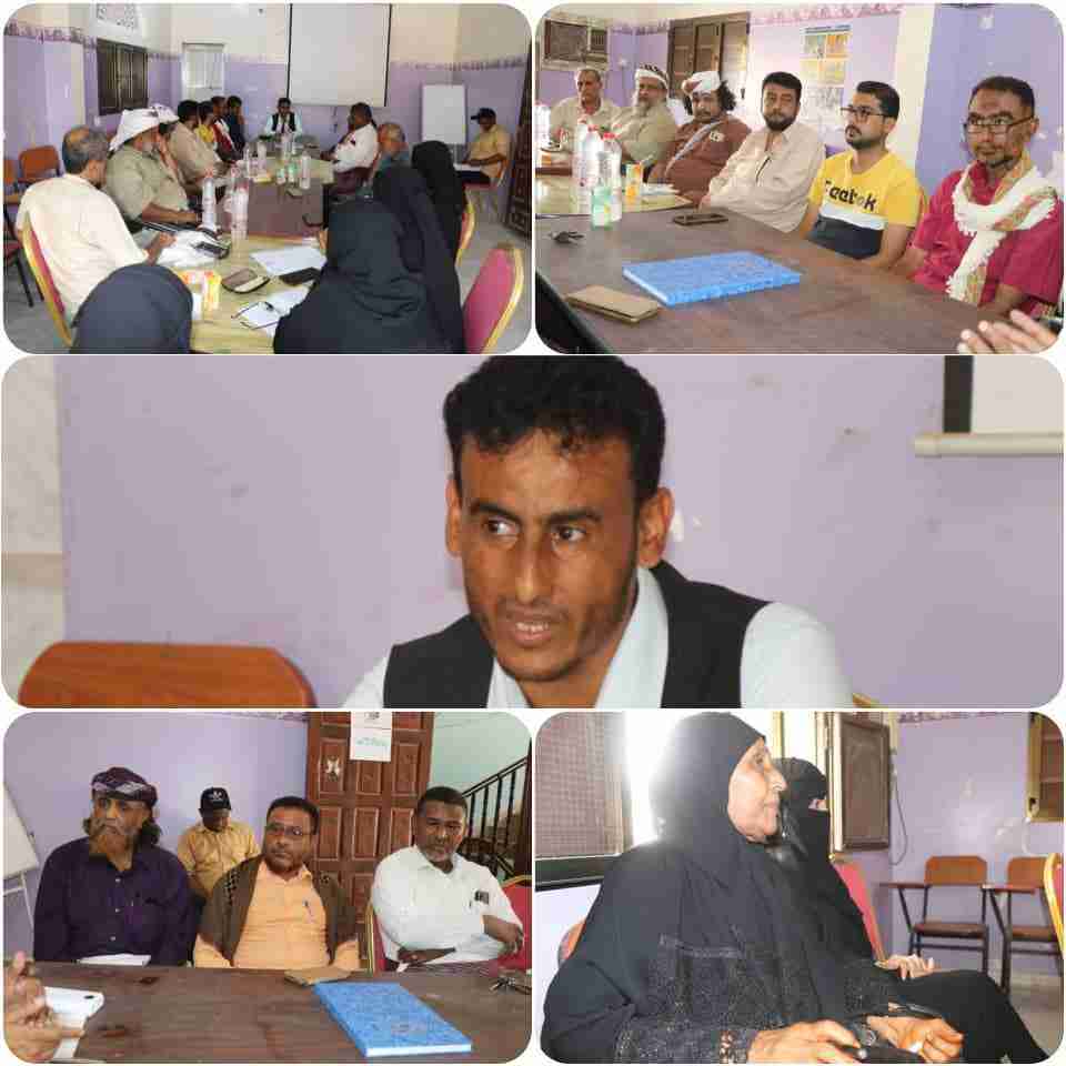مدير عام الوحدة التنفيذية للنازحين بأبين يرأس اجتماعاً استثنائياً لادارة المخيمات بجعار في خنفر