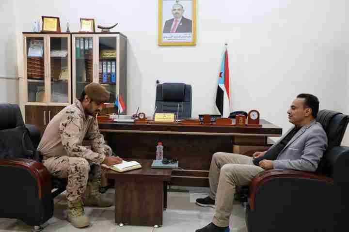 قائد الحزام الأمني بعدن يستقبل مدير إدارة التوجيه المعنوي والعلاقات العامة بوزارة الداخلية
