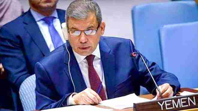 وقال "تحذر الحكومة اليمنية مجددًا من الخطر الذي تمثله الناقلة (صافر) على الأوضاع البيئية، والاقتصادية، والإنسانية في اليمن ودول المنطقة والعالم، وعبرت الحكومة عن دعمها للجهود التي تقودها الأمم المتحدة لمعالجة وضع الناقلة، إلا أن هذه الجهود لم تسفر عن نتائج ملموسة بسبب ابتزاز الميليشيات الحوثية للمجتمع الدولي عبر هذه الأزمة، والوقت لا يسعفنا لتفادي هذه الكارثة التي ينغي أن تحضى باهتمام هذا المجلس ولمجتمع الدولي" .. داعياً للمساهمة في سد فجوة التمويل اللازمة لتنفيذ خطة الأمم المتحدة لتجنب كارثة لن يحمد عقباها.