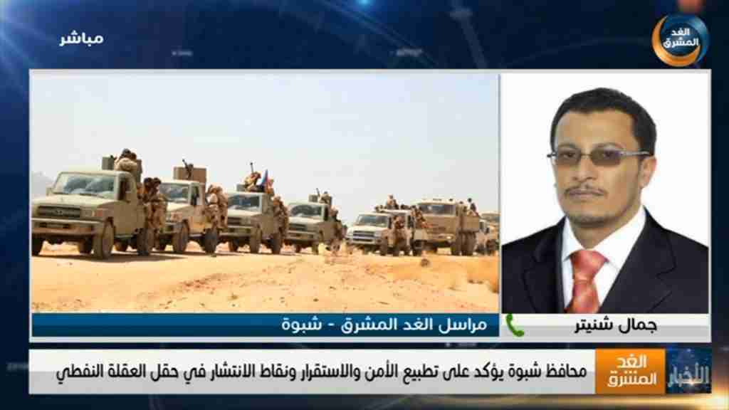 تحدث مراسل الغد المشرق بمحافظة شبوة، "جمال شنيتر" حول أبرز المستجدات للأوضاع الميدانية في شبوة إن الهدوء هو السائد في طريق العبر الدولي ومختلف المواقع التي شهدت مواجهات بين القوات المسلحة المتمثلة بالعمالقة وقوات دفاع شبوة ضد القوات المتمردة على السلطة المحلية في شبوة وقرارات مجلس القيادة الرئاسي والتابعة للإخوان في اليمن .