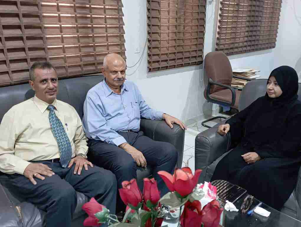 زار كلا من القائم باعمال رئيس القيادة المحلية للمجلس الانتقالي الجنوبي م/عدن عصام عبده علي والدكتور محمد حمود قاسم مدير عام مكتب الشؤون الاجتماعية والعمل م/عدن، اليوم، مكتب التخطيط والتعاون الدولي م/عدن والتقيا بالاستاذة انتصار مرشد مدير عام المكتب.