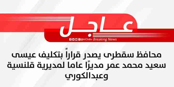 عاجل.. محافظ سقطرى يكلّف مديراً عاماً لمديرية قلنسية وعبدالكوري