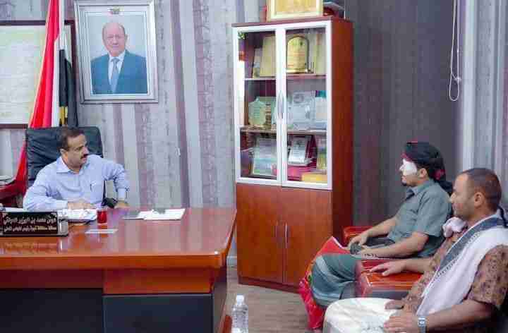 المحافظ بن الوزير يلتقي صدام البحري جريح أحداث تمرد شبوة ويجبر ضرره وخاطره
