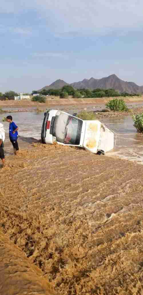 وخلفت السيول أضرارا مادية كبيرة في الأراضي الزراعية وبيوت المواطنين وومتلاكاتهم ومواشيهم في وادي عبدان بمحافظة شبوة.