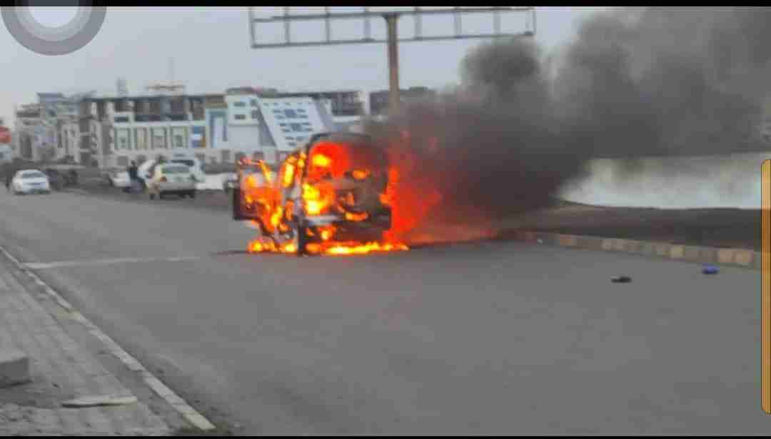 عاجل/ احتراق باص دباب بخط الجسر في العاصمة عدن