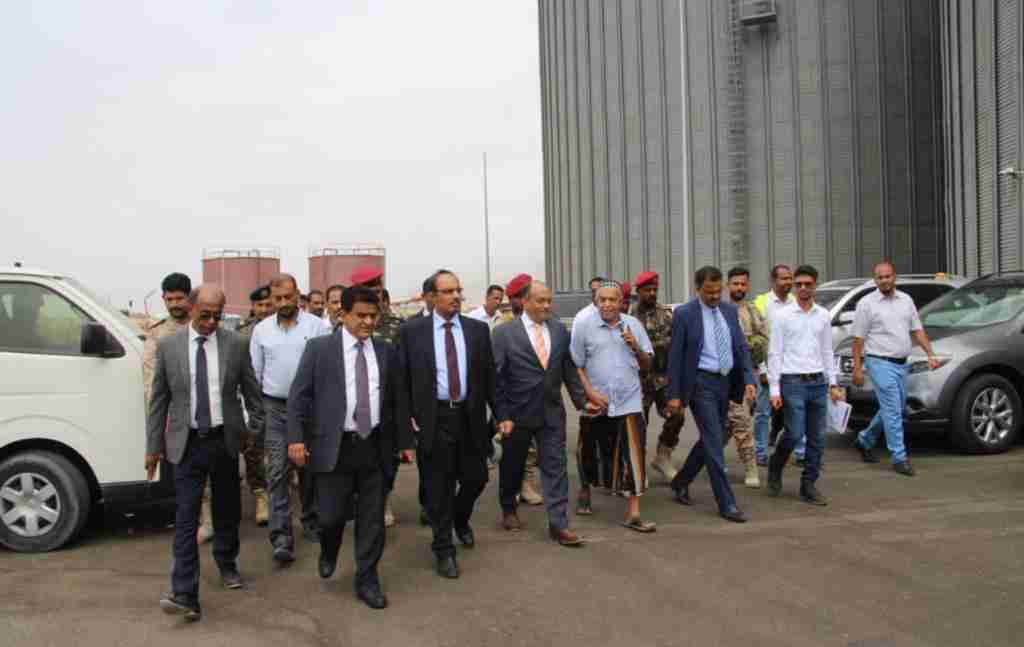 وزير النفط ومحافظ حضرموت ونائب وزير الصناعة يتفقدون مشروع مصنع الريادة لصوامع الغلال بالمكلا