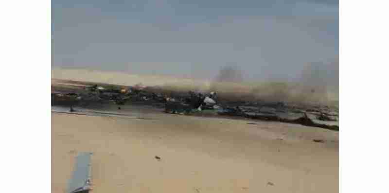 سقوط طائرة حوثية واحتراقها بصحراء الجوف