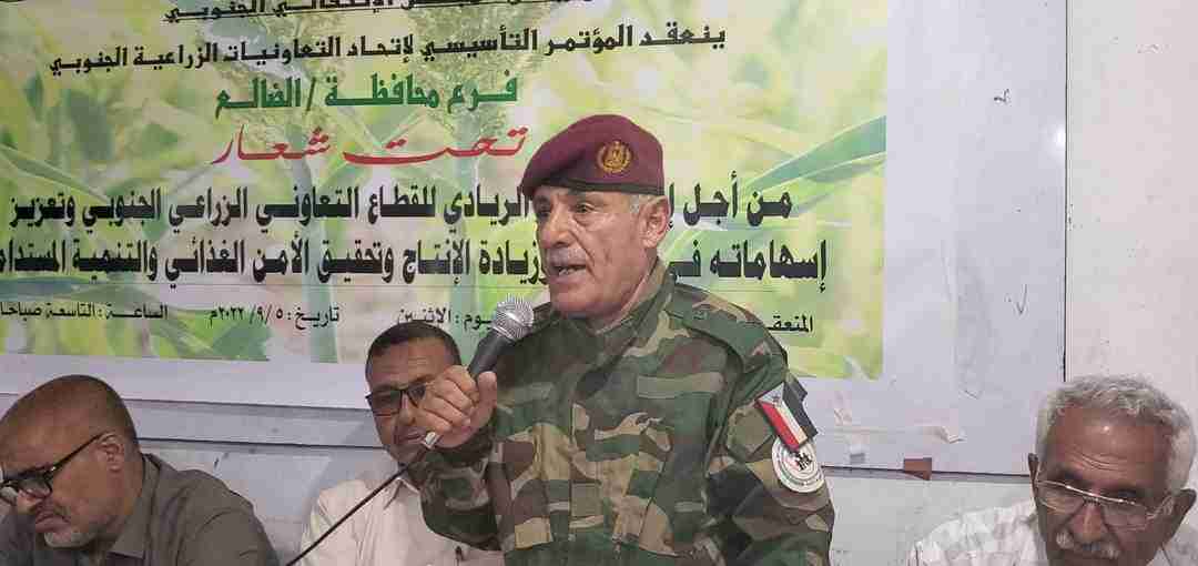 وأشار العميد عبدالله مهدي خلال كلمته إلى أهمية تفعيل دور التعاونيات الزراعية والخدمية، وذلك لما لها من أهمية كبيرة في خدمة الشعب الجنوبي، لافتا في السياق ذاته إلى أن تفعيل التعاونيات الزراعية والخدمية والاستهلاكية هو جزء من إستكمال بناء الدولة الجنوبية.