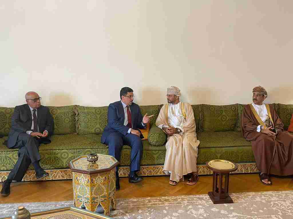 من جانبه جدد البوسعيدي موقف بلاده الثابت والداعم لوحدة اليمن وسيادة أراضيه.. معربا عن دعمه لكافة الجهود الدولية المبذولة لتحقيق السلام في اليمن وتطلعه لاستمرار اتفاق الهدنة الاممية والالتزام بها من اجل انهاء معاناة الناس وايقاف الحرب بشكل كامل.
