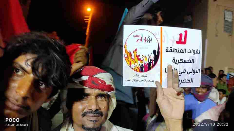 مديرية حوره ووادي العين مسيرة سلمية حاشدة، مساء السبت ضمن برنامج التصعيد الشعبي الذي دعا إليه شباب الغضب بمديرية حوره ووادي العين للمطالبة برحيل المنطقة العسكرية الأولى من وادي حضرموت وإحلال قوات النخبة الحضرمية.