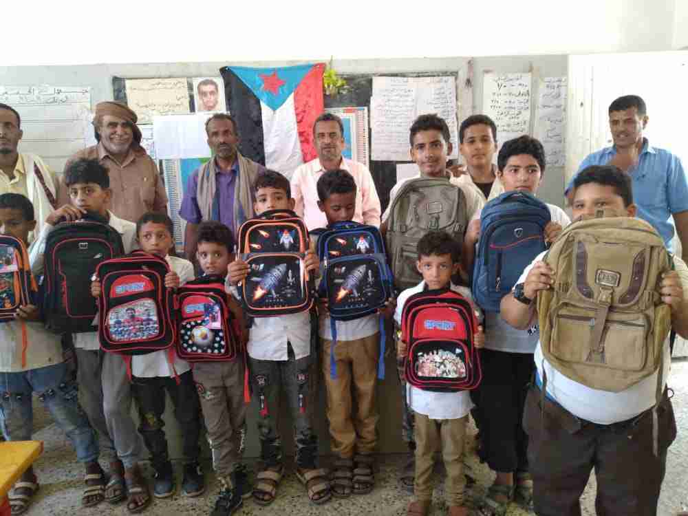 انتقالي لودر يدشن توزيع الحقائب المدرسية لأبناء الشهداء بالمديرية
