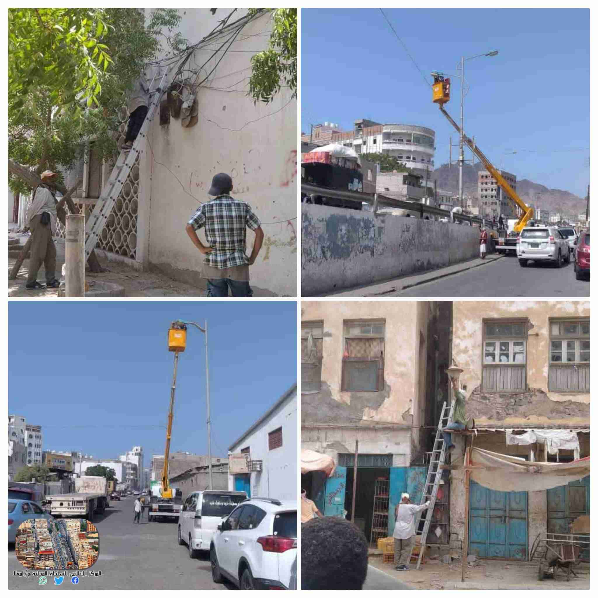 وقال الاخ ايهاب طه مدير قسم الإنارة إن أعمال الصيانة للإنارة في المعلا شملت منطقة الدكه والشوارع الداخليه المحيطه بسوق ناصر وحي الكهرباء والايام القادمة ستشمل جميع الشوارع والاحياء في المديرية
