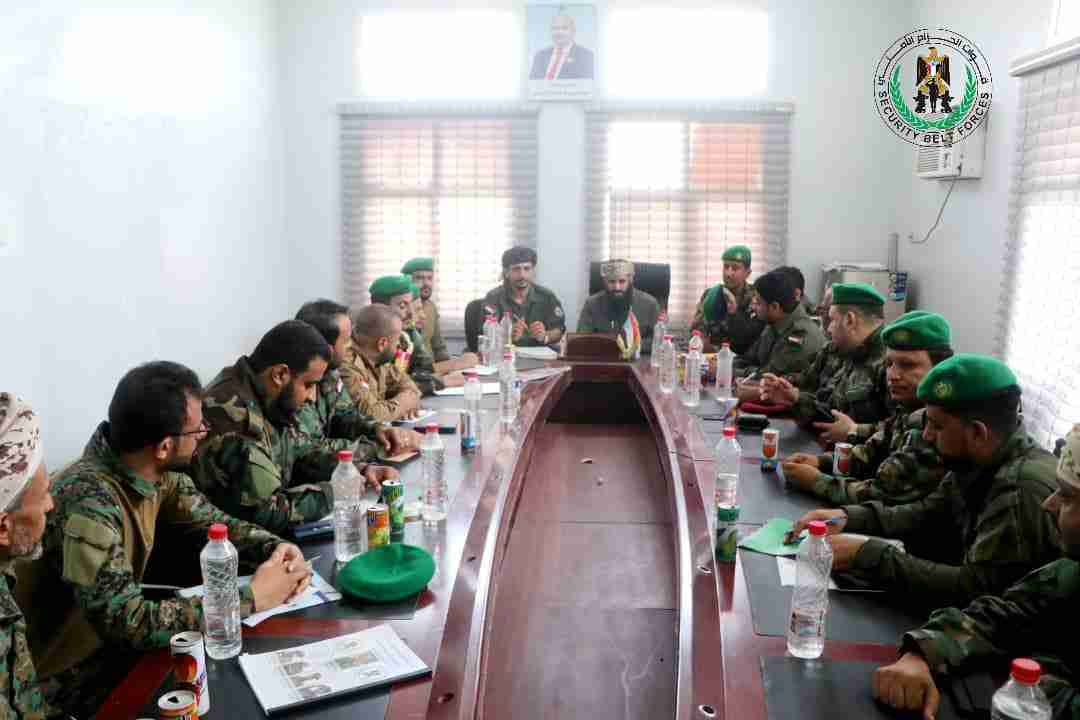 حيث ناقش الاجتماع عدد من النقاط التي تخص عمل قوات الحزام الامني بشكل عام ،ومستوى تنفيذ الخطط والبرامج المعدة من القيادة العامة، منها تطوير الهيكل الاداري والتنظيمي،وتوفير الاحتياجات، ومعالجة الاشكالات التي رافقت عمل الازمة خلال القترات السابقة ،والرفع باالقضايا الى الجهات المختصة النيابات والمحاكم فور الانتهاء من تجهيز الملفات ، وكذا الاعداد للدورات التأهيلية بالمشاركة مع القوات البرية ،وقوات العمالقة.