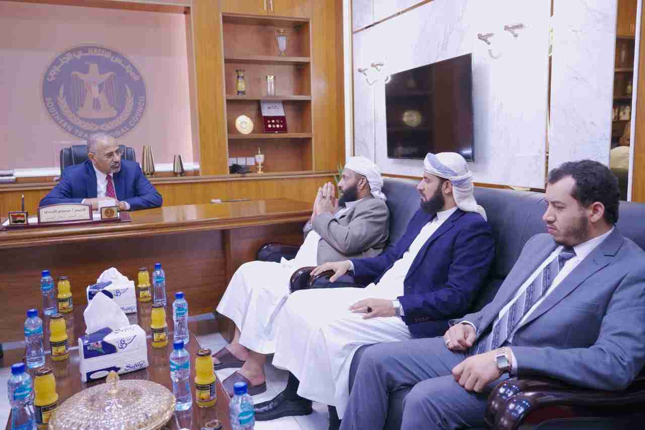 التقى الرئيس القائد عيدروس قاسم الزُبيدي رئيس المجلس الانتقالي الجنوبي، نائب رئيس مجلس القيادة الرئاسي، في مكتبه بمقر المجلس في العاصمة عدن، اليوم الثلاثاء، وزير الأوقاف والإرشاد بحكومة المناصفة الشيخ محمد عيضة شبيبة.