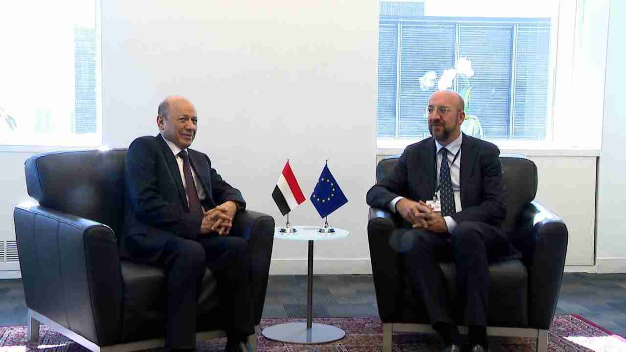 رئيس مجلس القيادة الرئاسي يلتقي رئيس المجلس الاوروبي