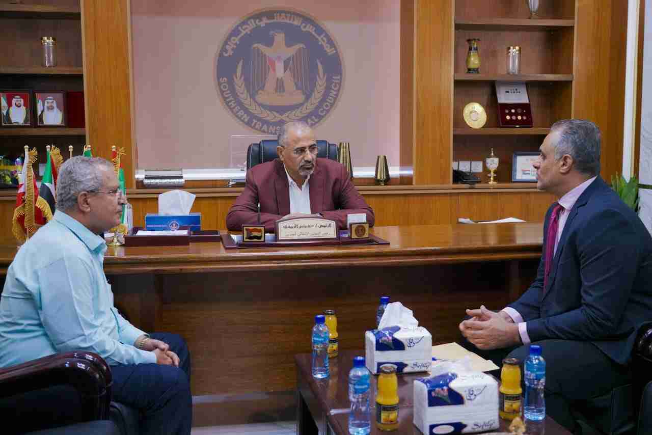 التقى الرئيس القائد عيدروس قاسم الزُبيدي رئيس المجلس الانتقالي الجنوبي، نائب رئيس مجلس القيادة الرئاسي بمكتبه في العاصمة عدن، صباح اليوم، المهندس "معين الماس" رئيس مجلس إدارة صندوق صيانة الطرق والجسور المركز الرئيسي - عدن.