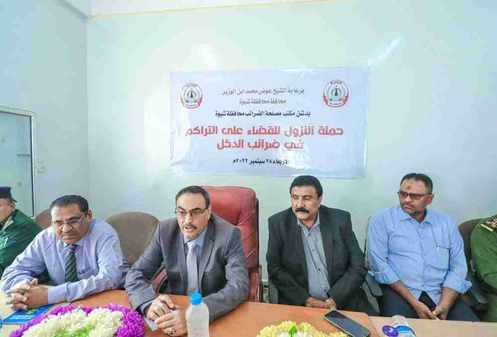 أمين محلي شبوة يدشن أعمال اللجان المكلفة بمحاسبة وإنهاء ملفات التراكم الضريبي